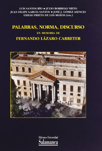Palabras, Normas, Discurso : En Memoria De Fernando Lázaro Carreter VV. A.A. UNIVERSIDAD DE SALAMANCA – En noventa artículos, esta obra, fruto no fácil del esfuerzo de muchos, cubre el vasto campo que un filólogo completo, como lo fue Fernando Lázaro Carreter, tiende a querer abarcar. EL lector interesado comprobará sin gran esfuerzo que el ella se reflejan la morfología y la sintáxix, la lexicografía y la lexicología, los estudios contextuales (pragmática, análisis del discurso, semánticaa contextual), la lingüística histórica, la sociolingüística, la historia de las ideas lingüísticas y la de las filológico-literarias, la normativa, la teoría lingüística general, la fonología y, por supuesto, la investigación sobre la creación literaria, ya sea en su vertiente más cláscia y consagrada o en la más actual e inesperable.